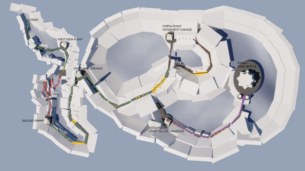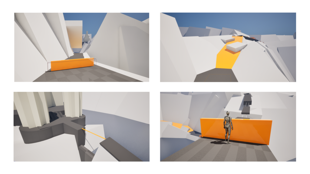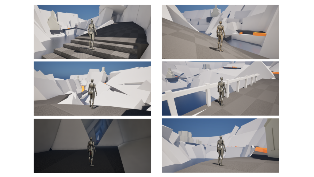– Designed the full level layout – Created traversal routes and obstacle sequences – Defined player flow and pacing – Designed viewpoint system for navigation guidance – Balanced movement challenges and exploration spaces