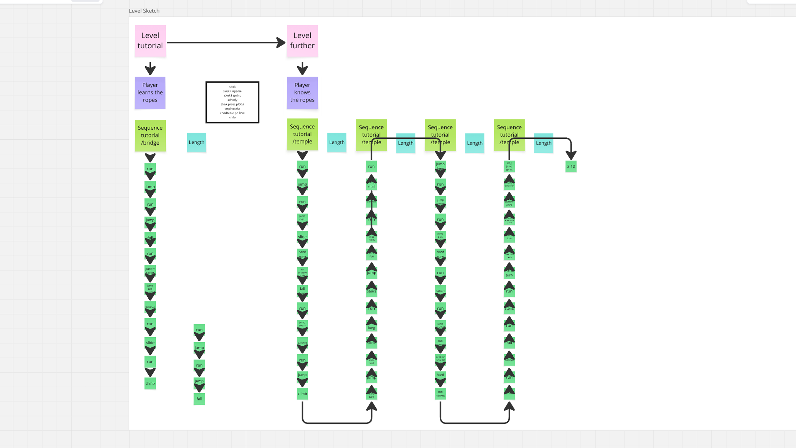 The level design process started by mapping out the full sequence of player actions.