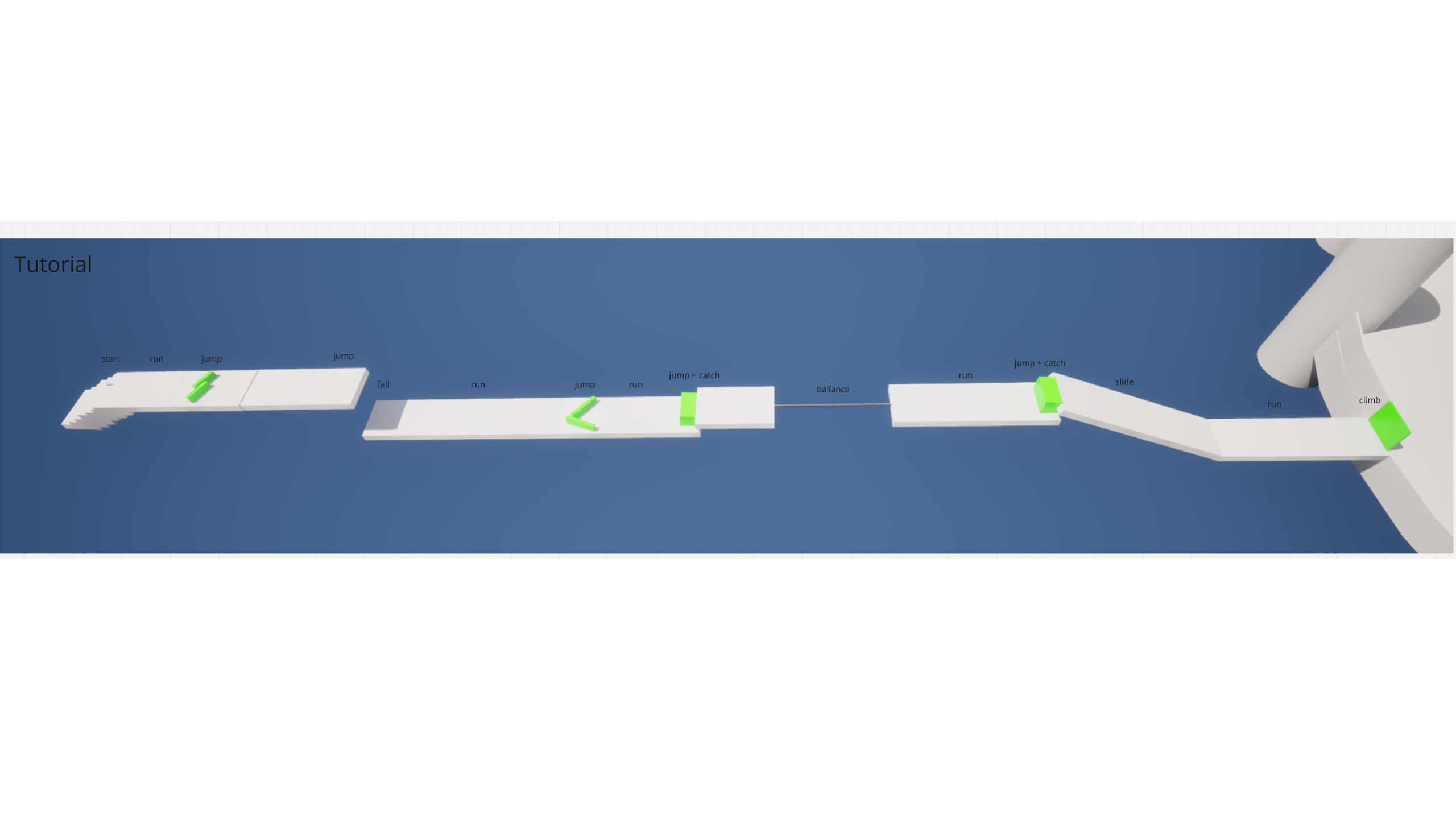 – Obstacles are designed to create rhythm and flow – Movement alternates between fast traversal and controlled jumps – Routes support fluid transitions between different mechanics